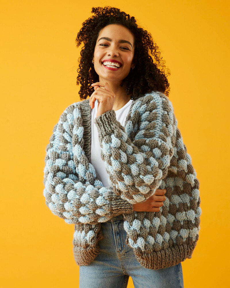 Bubble Stitch Cardigan Free Knitting Pattern For Women in Paintbox Yarns Simply Super Chunky LoveCrafts Very well made.