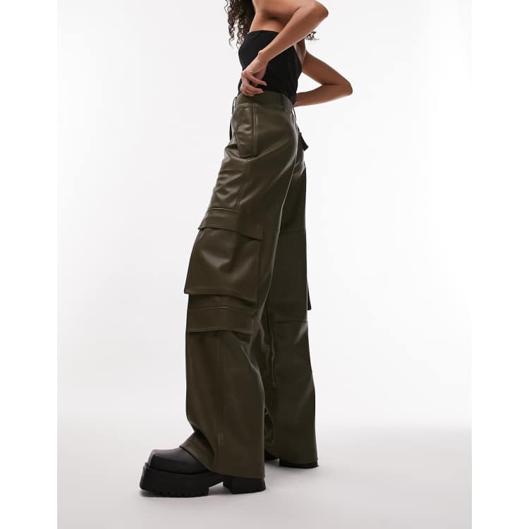 ClassicfuncenterShops Topshop faux leather utility cargo trouser in dark khaki woman valentino dresses wool short dress Very well made.