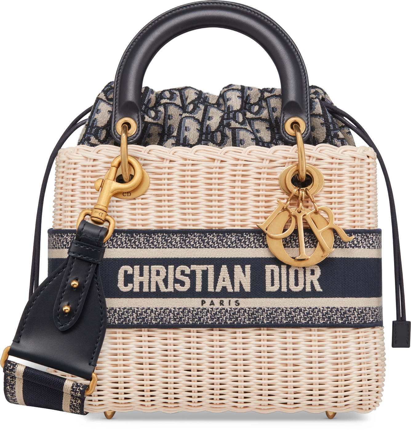 Medium Lady Dior Bag Natural Wicker and Blue Dior Oblique Jacquard DIOR Very well made.