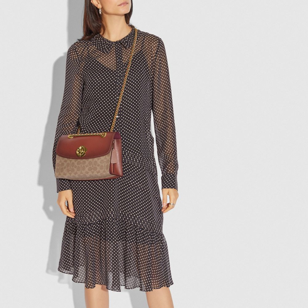 Coach Parker In Colorblock Signature Canvas Women s Shoulder Bag With Tea Rose Turnlock 30585 B4RU SHEIN Very well made.