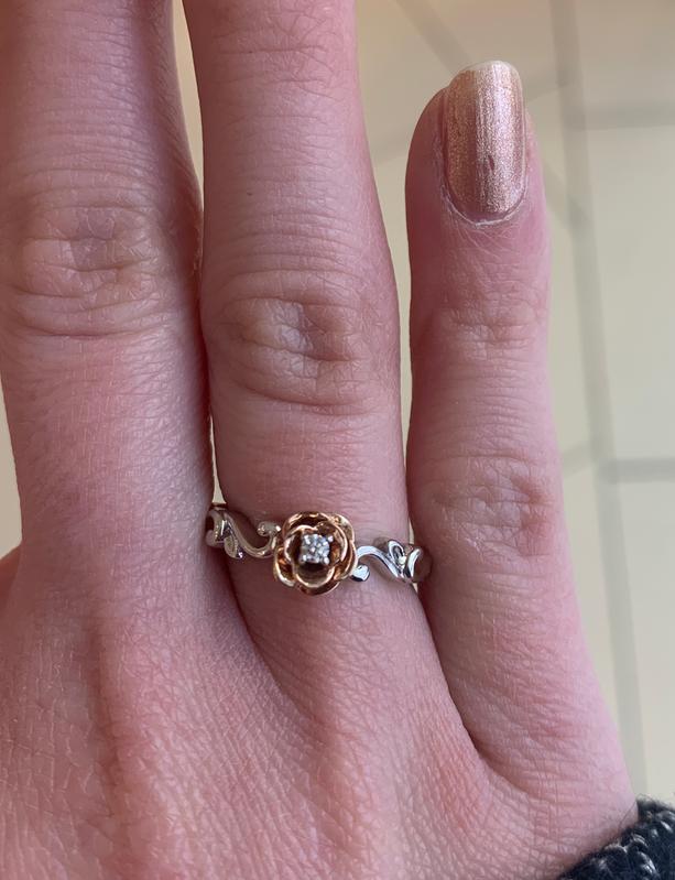 Enchanted Disney Belle Diamond Accent Solitaire Rose Scrolled Promise Ring in 10K Two Tone Gold Zales Outlet Very well made.