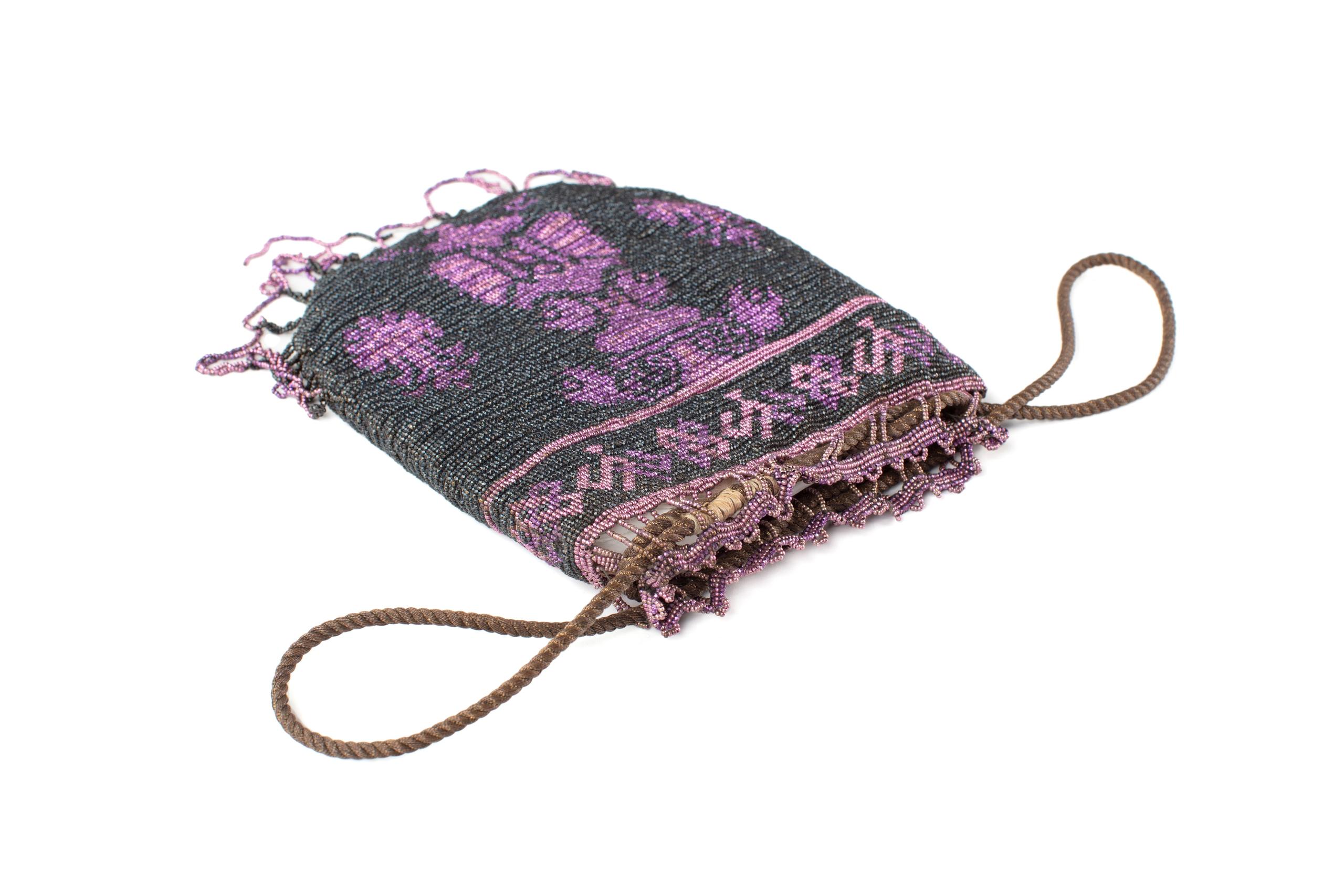 Circa 1890s Micro beaded Drawstring Evening Bag Very well made.