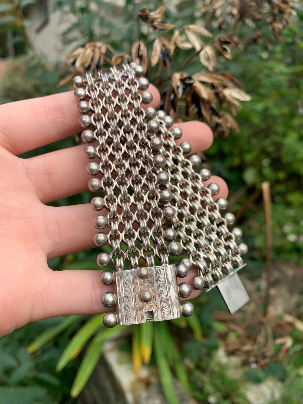 Victorian chunky silver extra wide cuff bracelet Gembank1973 Very well made.