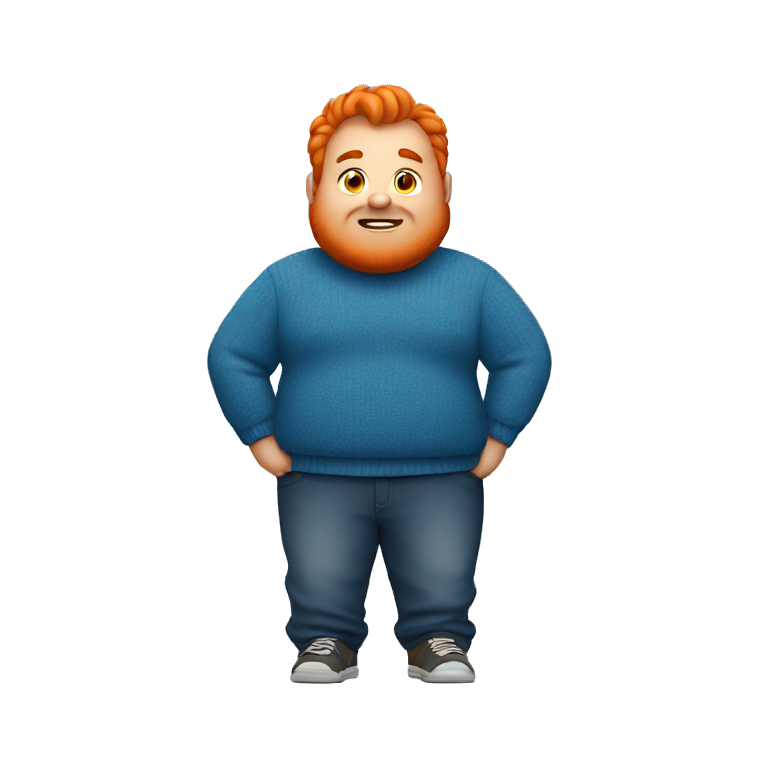 a fat man with blue sweater and orange hair emoji AI Emoji Generator Very well made.