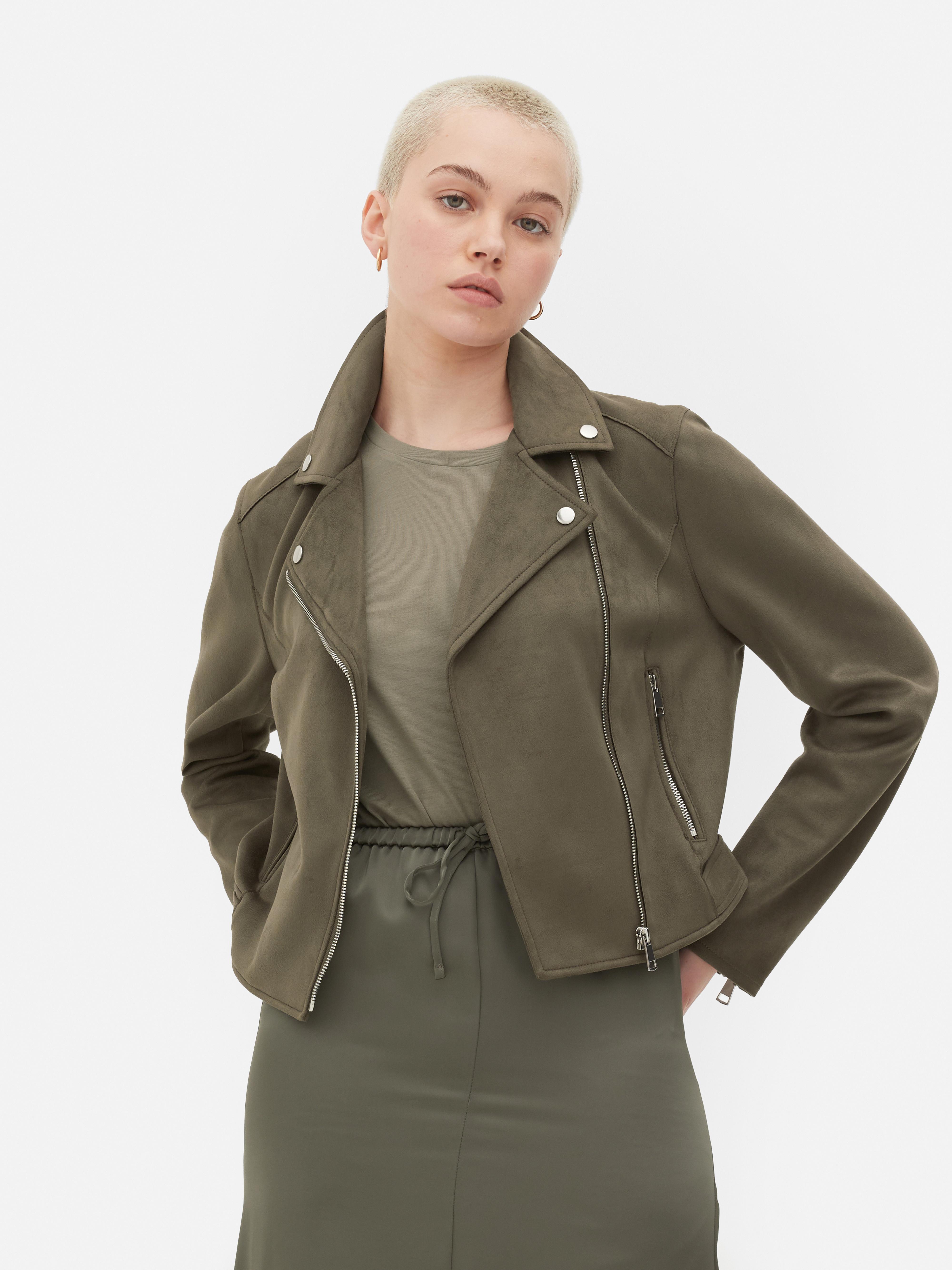 Womens Khaki Faux Suede Biker Jacket Primark Very well made.