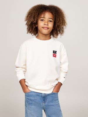 TOMMY HILFIGER FELPA CON CAPPUCCIO E LOGO RICAMATO Bambino Bianco Mascheroni Sportswear Very well made.