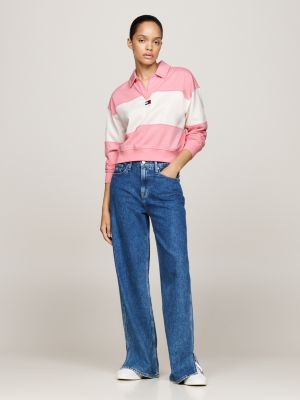 Felpa relaxed fit color block con colletto Rosa Tommy Hilfiger Very well made.