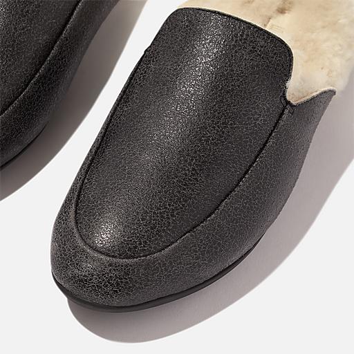 Fitflop Women s GRACIE Double Faced Shearling Leather Mules Black Size CA 7 Very well made.