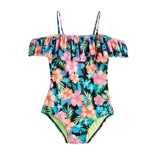 Girls 4 16 SO Off The Shoulder Flounce One Piece Swimsuit in Regular Plus Very well made.