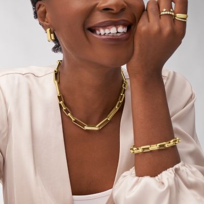 Heritage D Link Glitz Gold Tone Stainless Steel Signet Ring JF04585710002 Fossil Very well made.