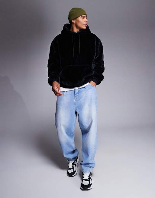 ASOS DESIGN oversized faux fur hoodie in black Very well made.