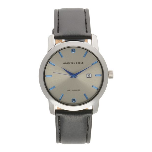 Geoffrey Beene Men s Gunmetal Tone Blue Sapphire Strap Watch Very well made.