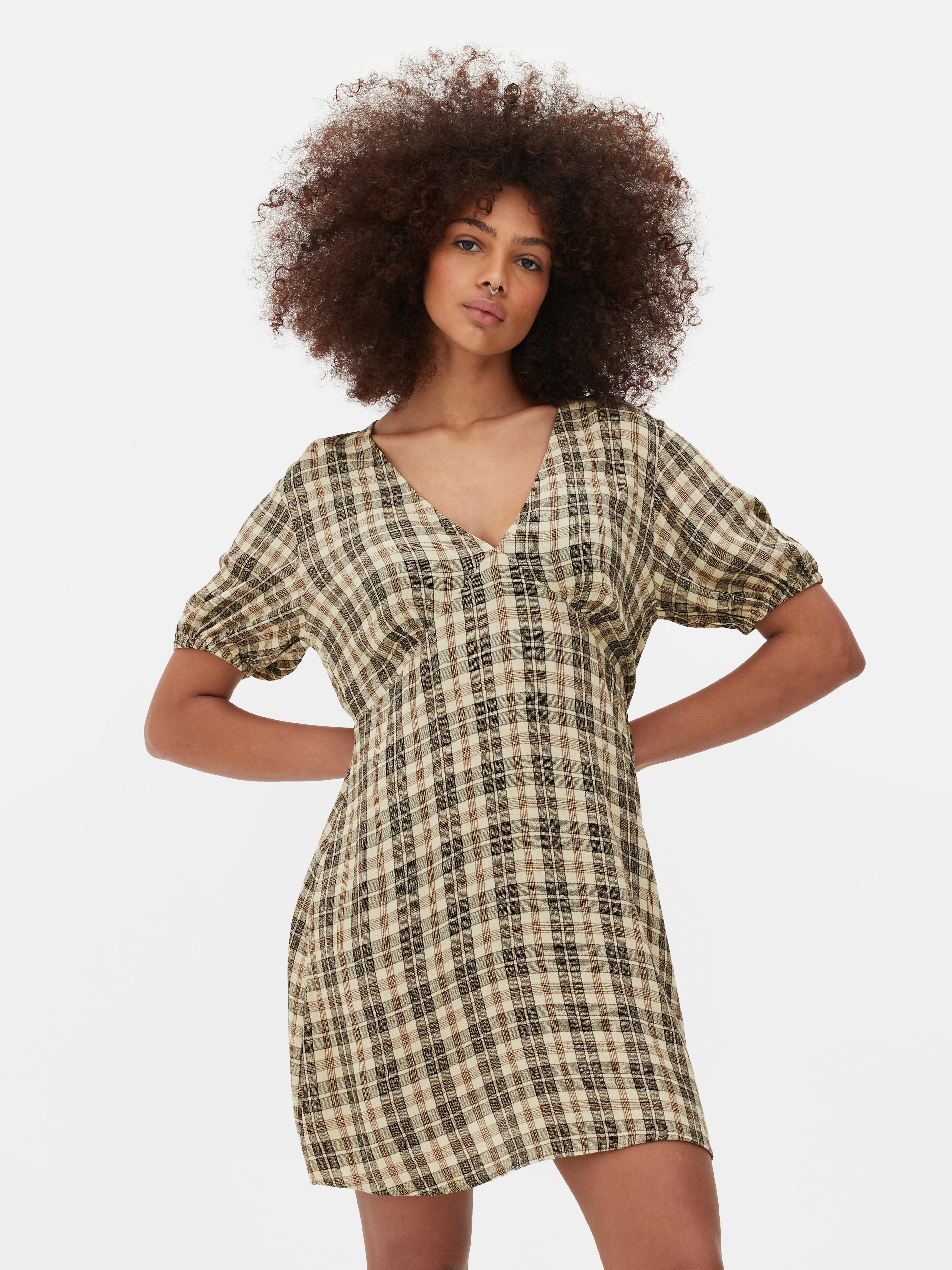 Womens Multi Check Pattern V Neck Mini Dress Primark Very well made.