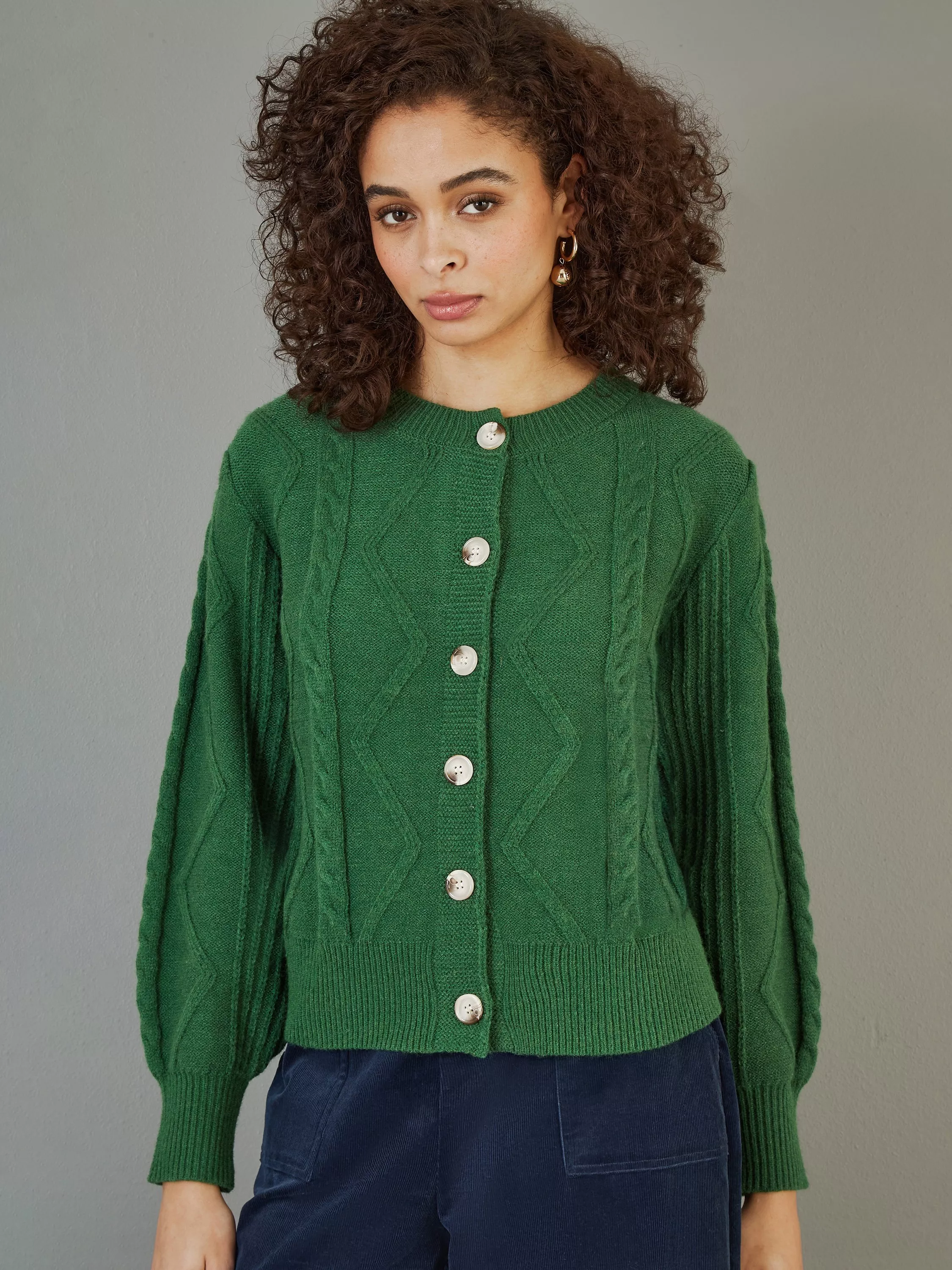Yumi Chunky Cable Knit Cardigan Green Very well made.