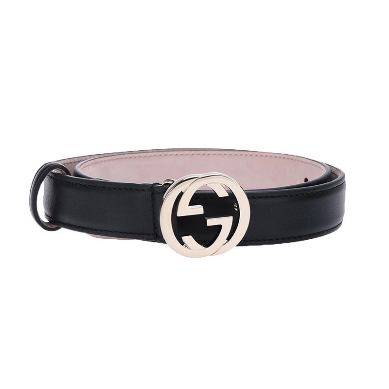 Interlocking buckle leather belt Gucci Black size 75 cm in Leather 45742189 Very well made.