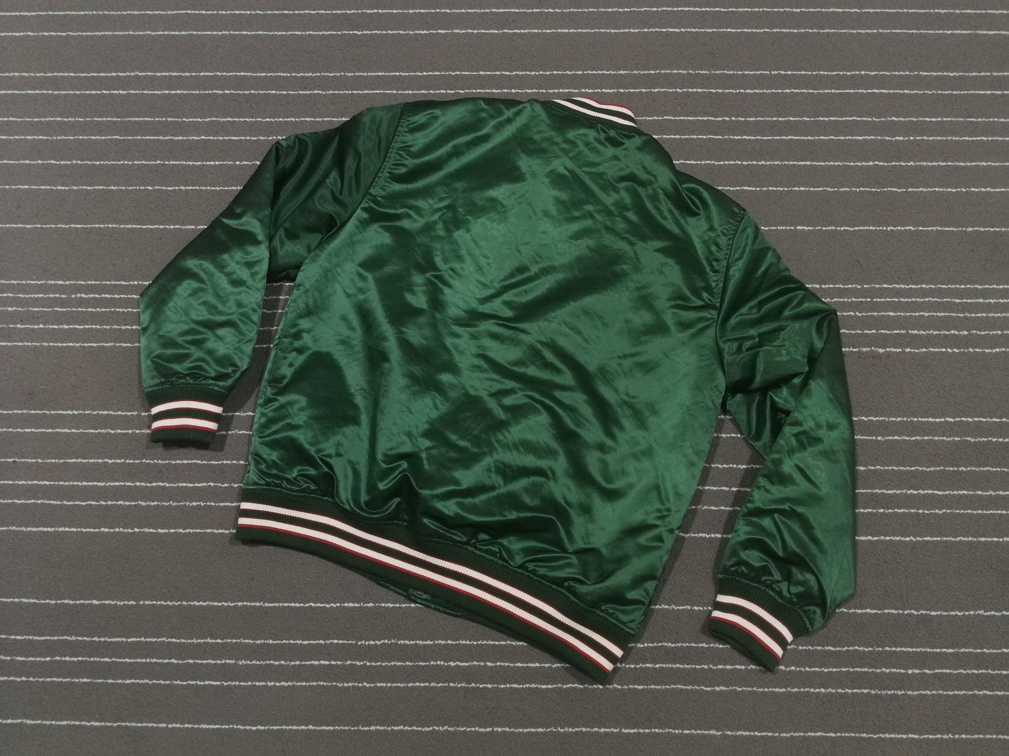 H M WICKS Satin Bomber Varsity Jacket Green Red M Very well made.
