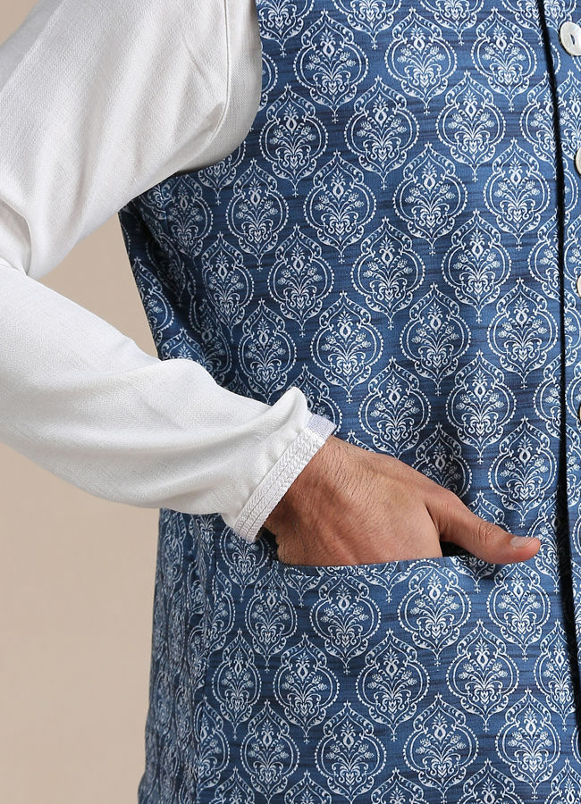 Buy Brilliant Blue Print Half Jacket Online in Canada Manyavar Nehru Jacket for Men Very well made.