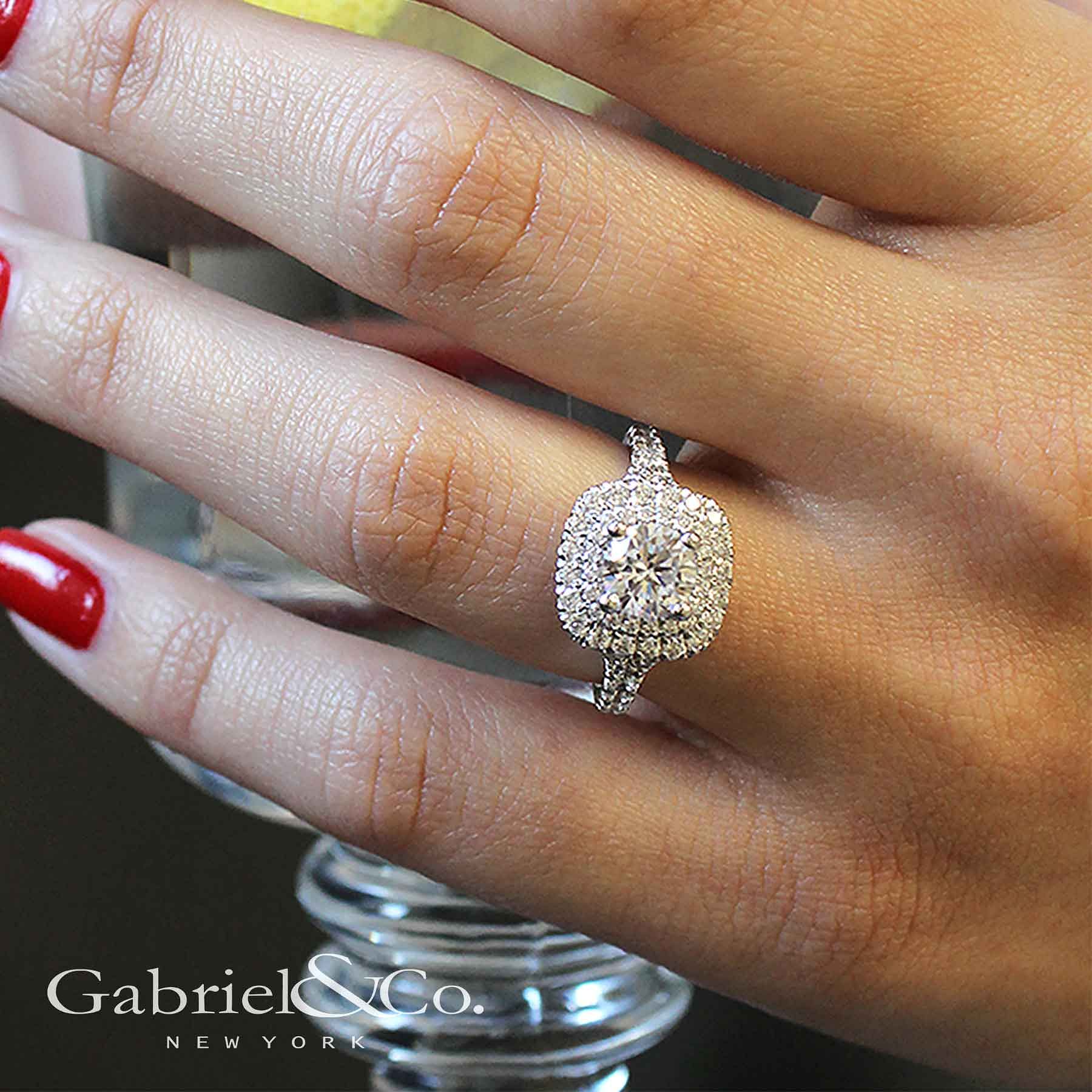 14K White Gold Cushion Double Halo Round Diamond Engagement Ring ER12675R4W44JJ Gabriel Co Very well made.