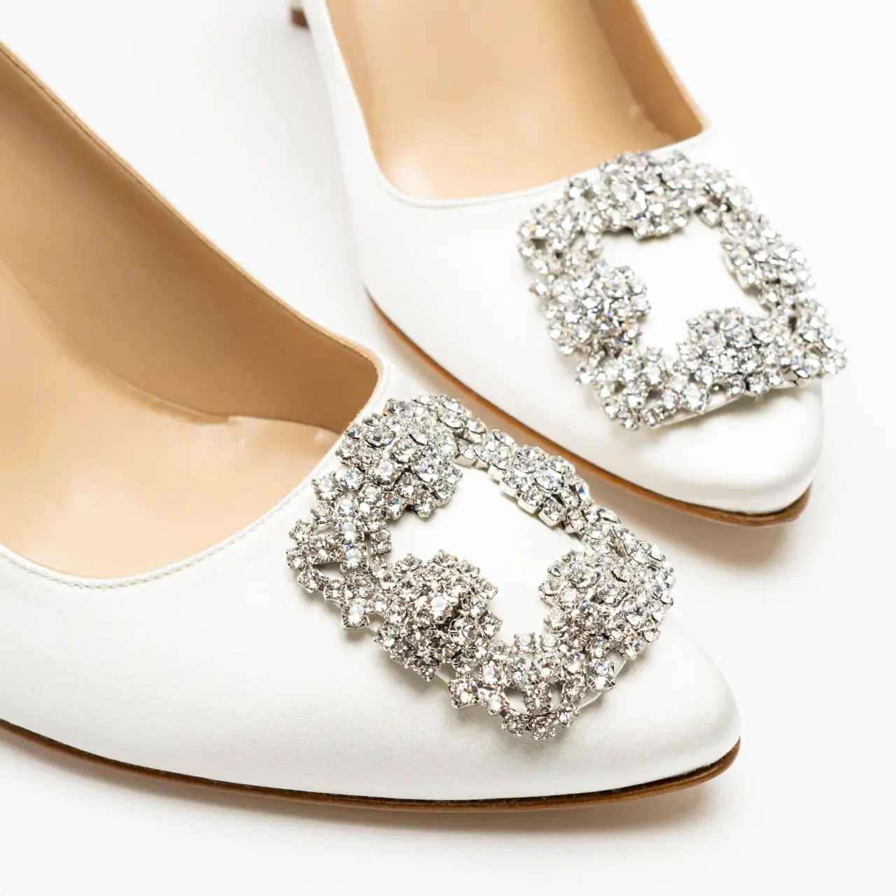 Bridal Hangisi 105 embellished satin pumps in white Manolo Blahnik Mytheresa Very well made.