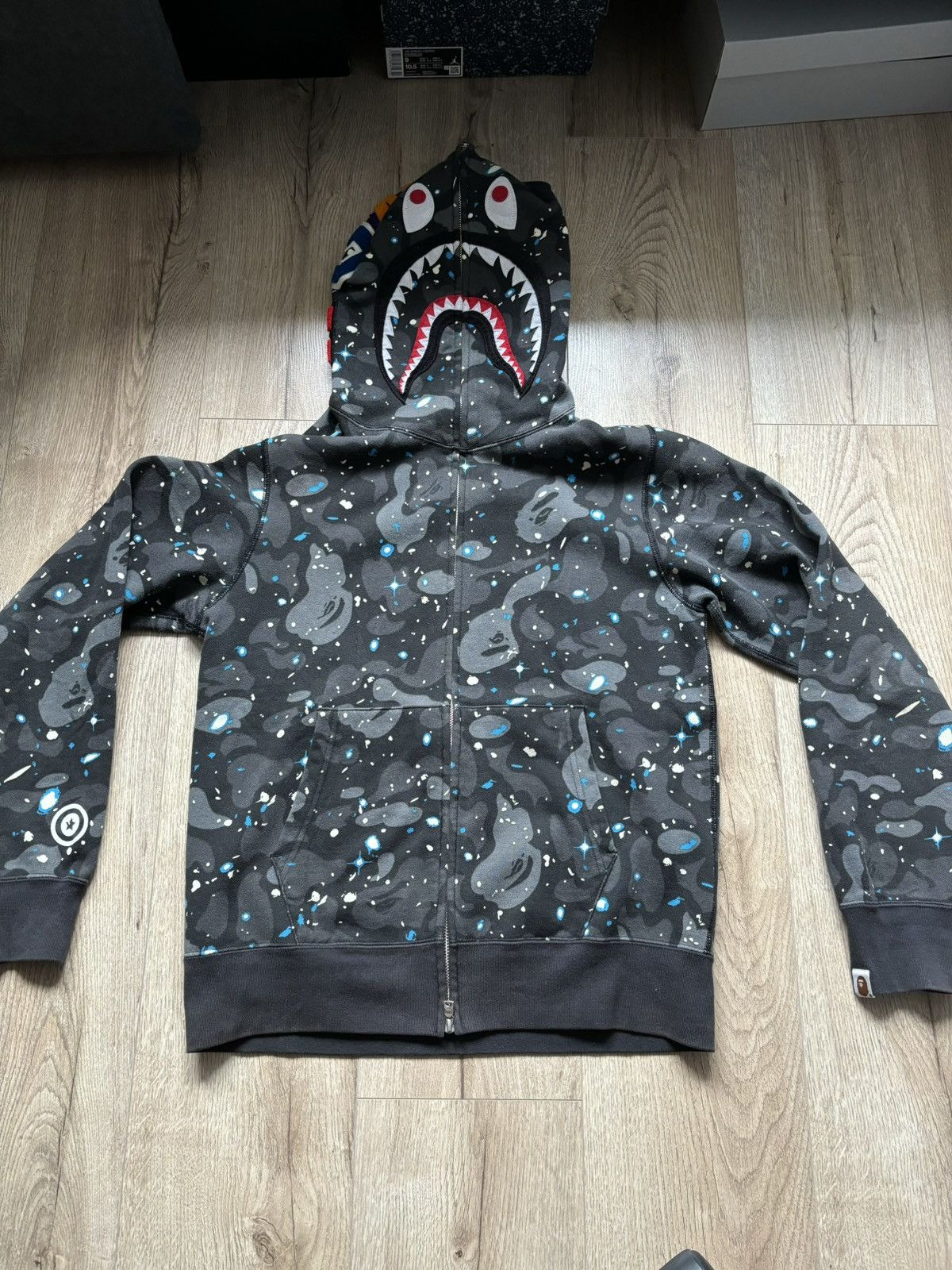 BAPE Glow in the dark Space camo shark full zip hoodie A Bathing Ape Size S Very well made.