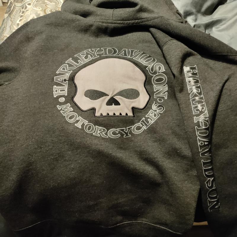 Harley Davidson Women s Hoodie Black Willie G Skull Embellish Full Zip S02 eBay Very well made.