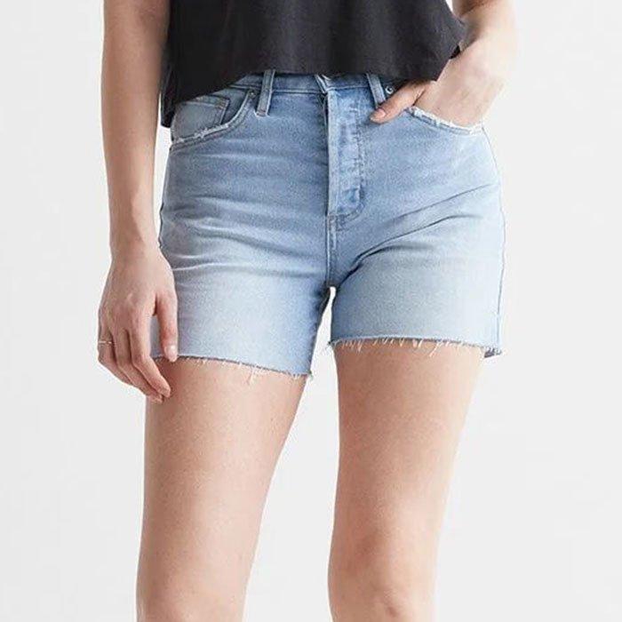 Duer Women s Midweight Denim High Rise Short Light Bleach Very well made.