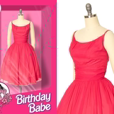 Vintage 1950s Dress 50s Silk Chiffon Hot Pink Spaghetti Strap Birthday Life Vintage San Francisco CA Very well made.