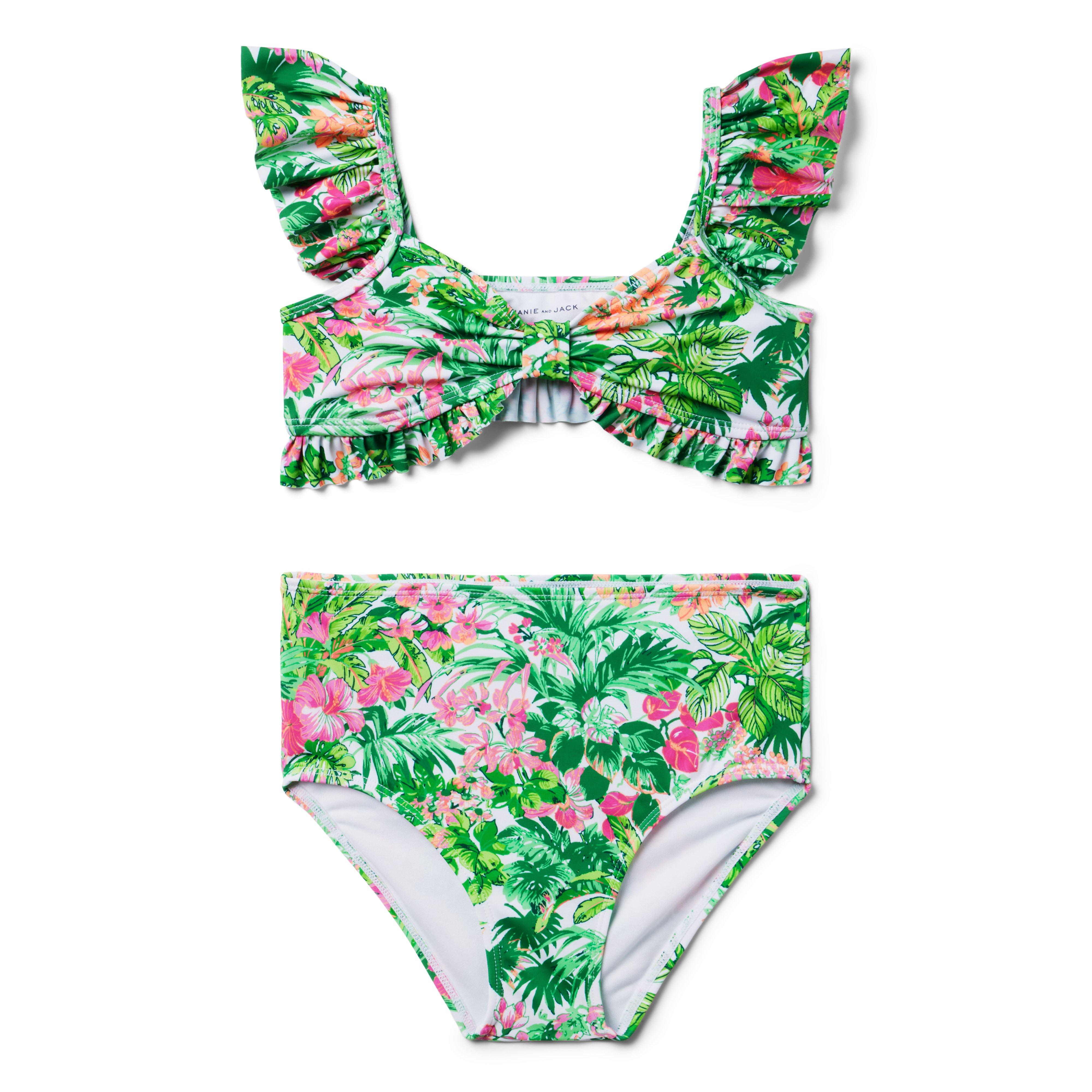 Girl Lime Green Floral Recycled Tropical Floral 2 Piece Swimsuit by Janie and Jack Very well made.