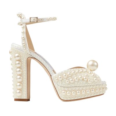 White Satin Sandals with All Over Pearls SACORA 100 Autumn Winter 18 JIMMY CHOO CA Very well made.