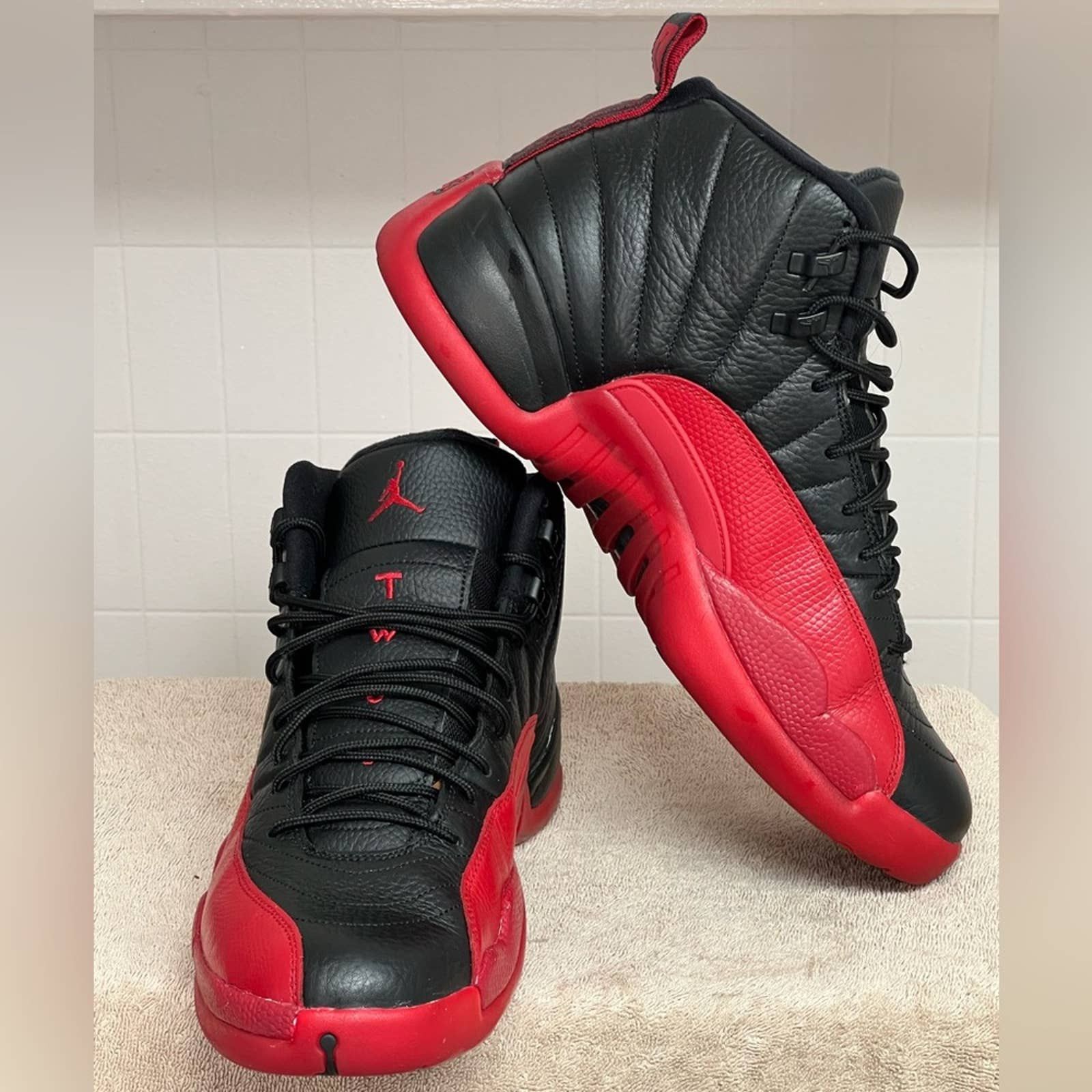 AIR JORDAN 12 XII RETRO FLU GAME BRED LEATHER BLACK RED MENS SIZE 10.5 Very well made.