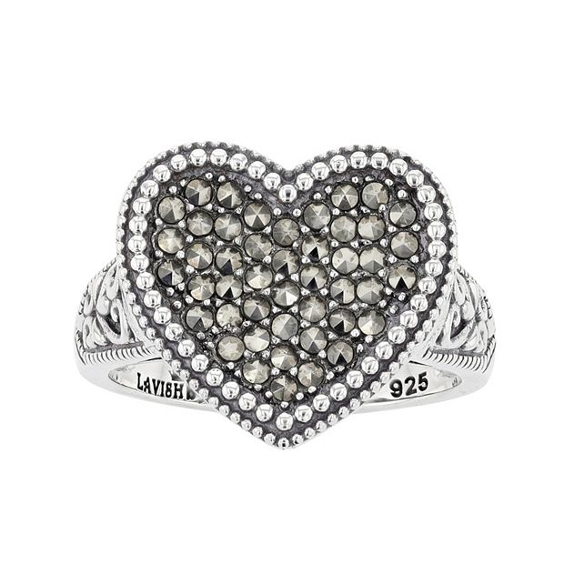 Lavish by TJM Sterling Silver Marcasite Pave Heart Ring Women s Size 7 Very well made.