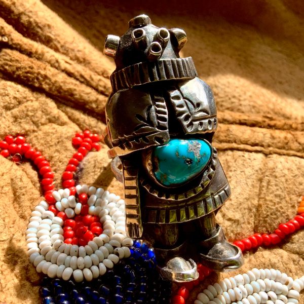 Jewelry Navajo Navajo Silver Turquoise Kachina Ring Size 7 1 2 Very well made.