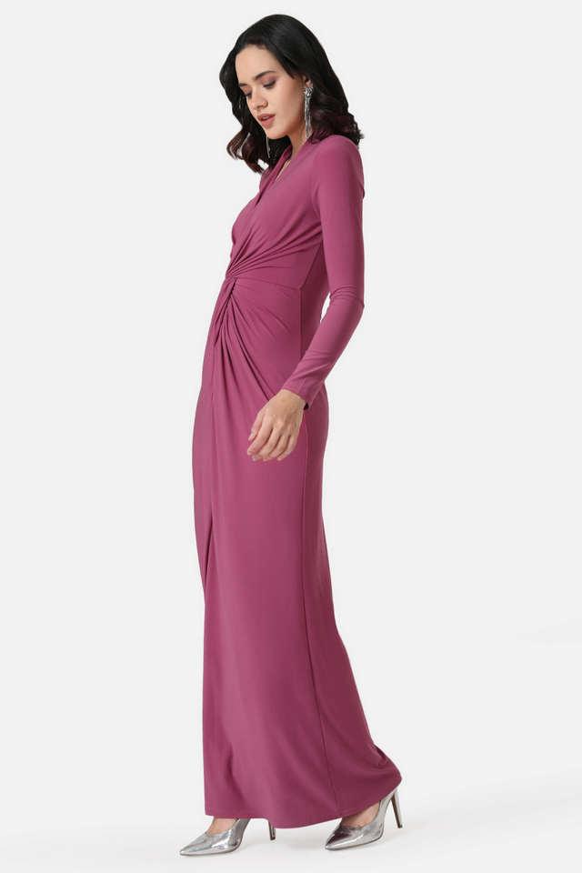 Buy KAZO Pink Solid V Neck Poly Cotton Women s Maxi Dress Shoppers Stop Very well made.