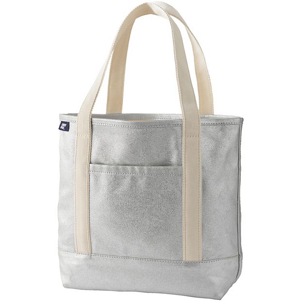 Lands End Small Coated Metallic 5 Pocket Zip Top Canvas Tote Bag Very well made.