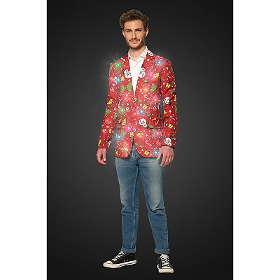 Men s Suitmeister Slim Fit Christmas Tree Lights Light Up Red Blazer Very well made.