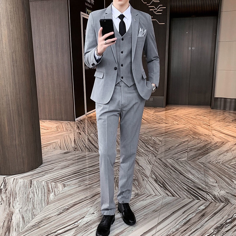 Suit Men s Korean Version Slim Fit Casual Three Piece Handsome Youth Wedding Dress Spring A Shopee Malaysia Very well made.