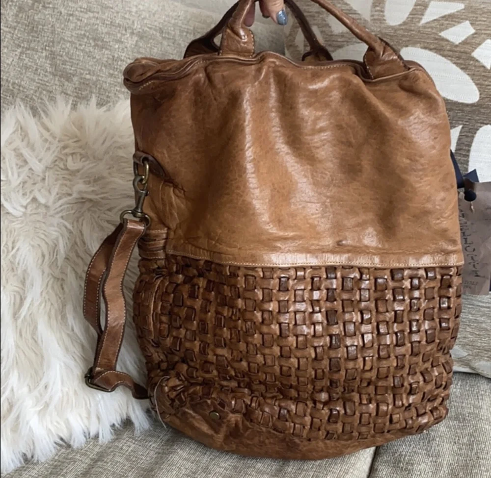 FRENCH LOVER. Handmade real leather oversized tote bag with woven details ELF Very well made.