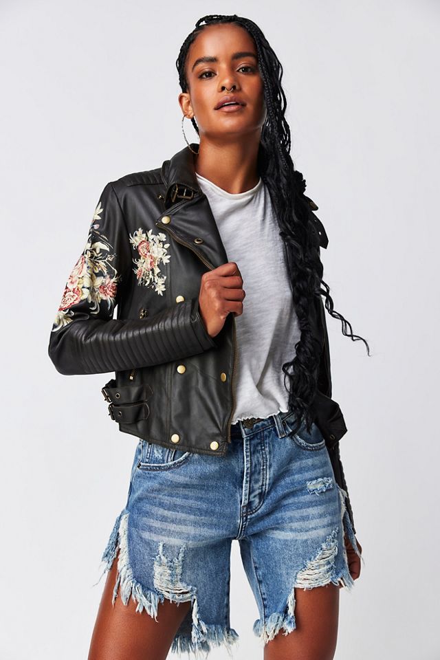 JAKETT Harley Floral Leather Moto Jacket Free People Very well made.