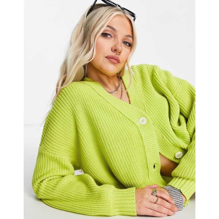 Noisy May lightweight cardigan in bright lime green Very well made.