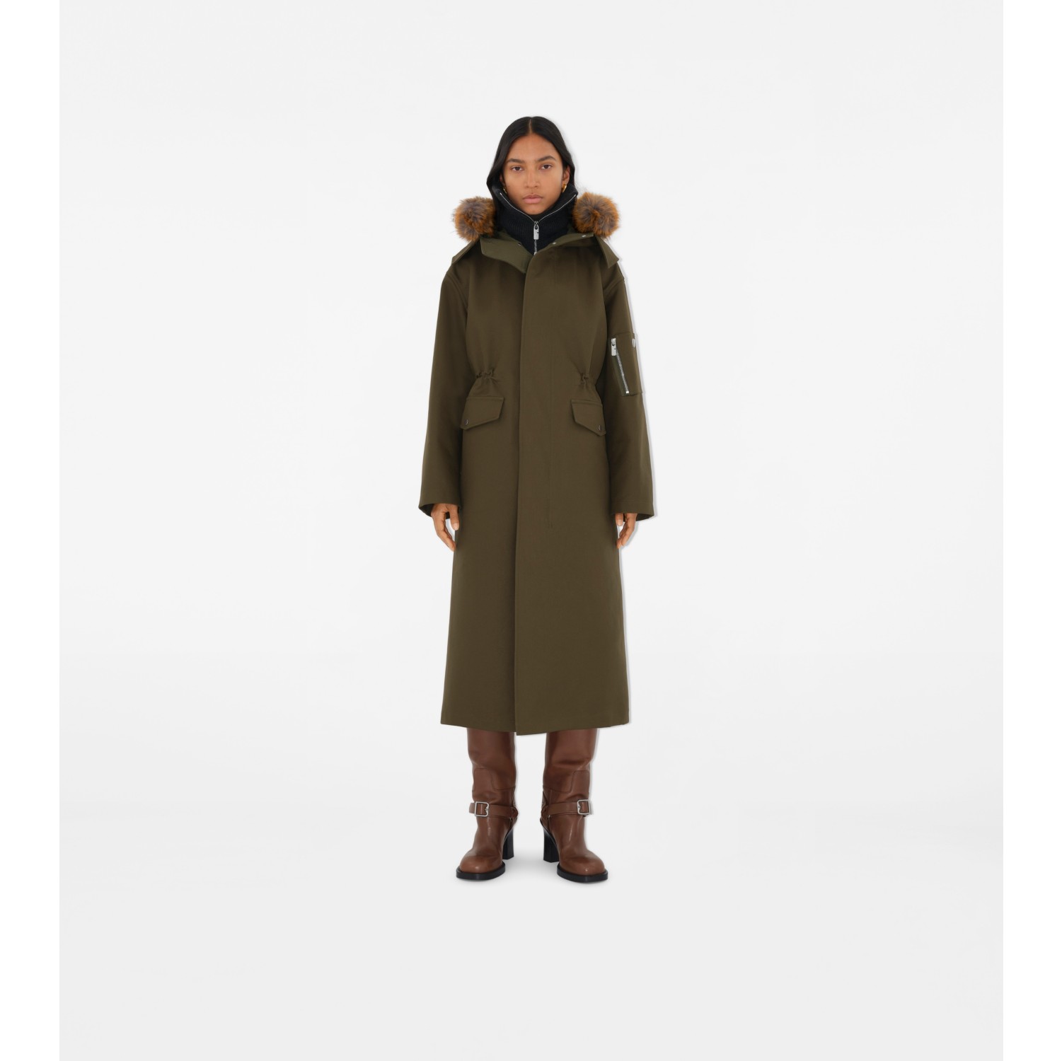Long Faux Fur Trim Cotton Parka in Loch Women Burberry Official Very well made.