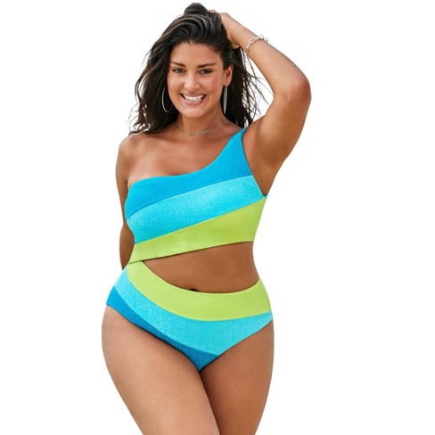 Swimsuits For All Women s Plus Size One Shoulder Color Block Cutout One Piece Swimsuit 8 Cool Sparkle Target Very well made.