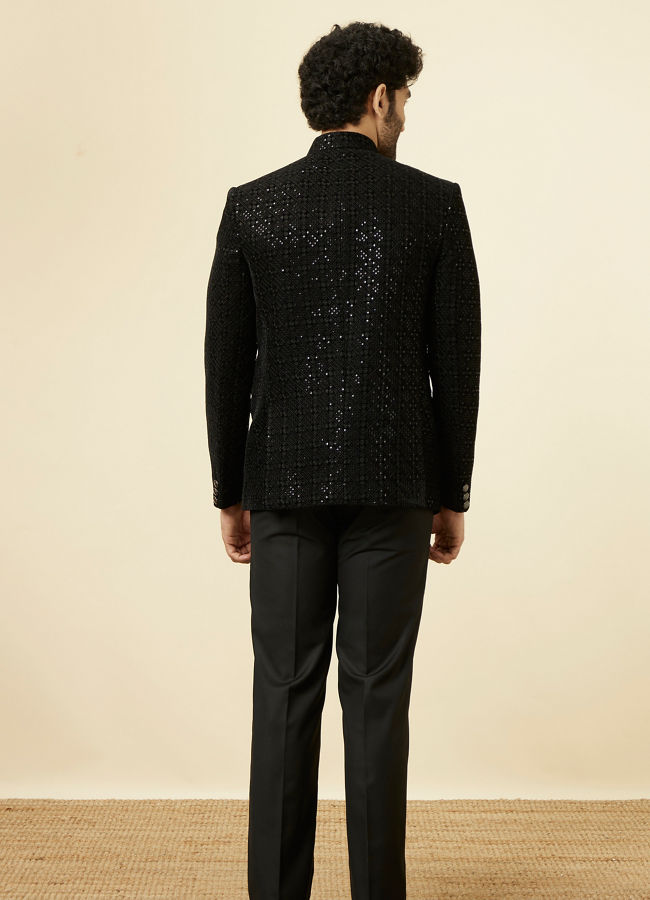 Buy Midnight Black Grid Patterned Sequined Suit Online in the USA Manyavar Suit Set for Men Very well made.