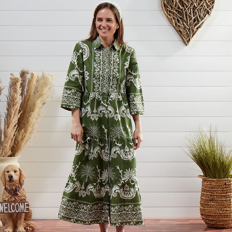 Green Tier Maxi Shirt Dress Cracker Barrel Very well made.