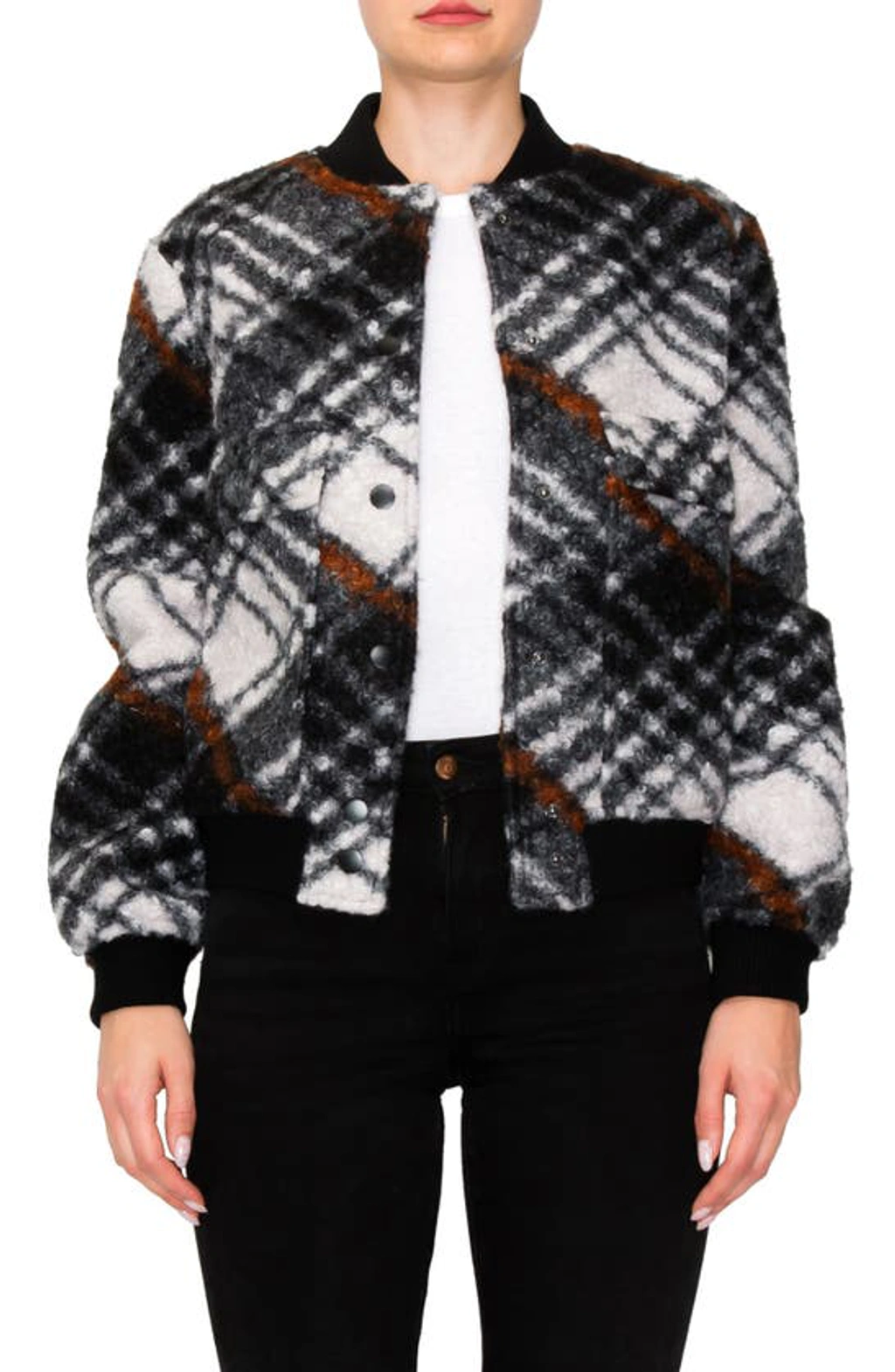 Melloday Plaid Faux Shearling Bomber Jacket In Ivory Charcoal Plaid ModeSens Very well made.