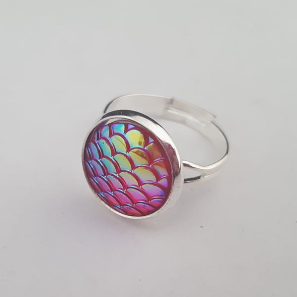 Dragon egg Mermaid scales ring pink and red ir. Folksy Very well made.