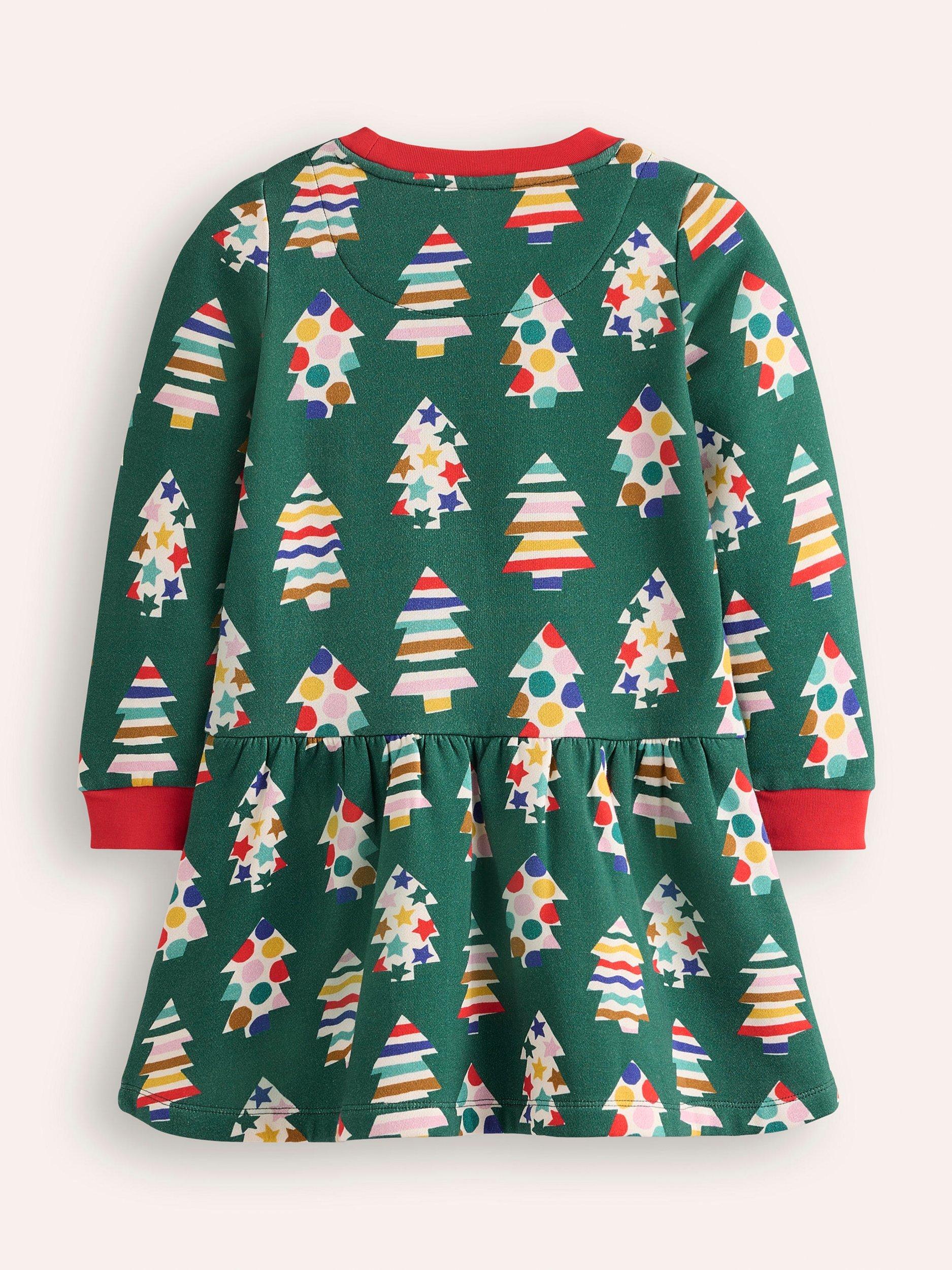 Mini Boden Kids Cosy Christmas Tree Print Sweatshirt Dress Green Multi Very well made.