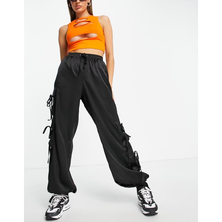 Missguided satin cargo trousers with tie cuff detail in black ASOS Very well made.