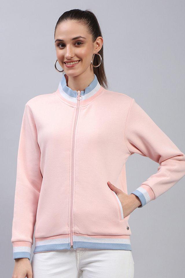 Buy MONTE CARLO Peach Solid Cotton Blend High Neck Women s Sweatshirt Shoppers Stop Very well made.