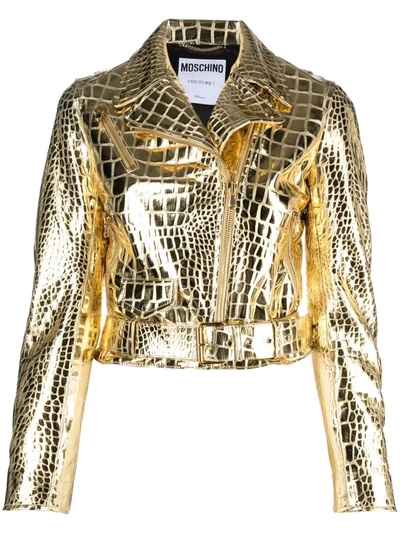 Moschino Crocodile effect Cropped Biker Jacket In Gold ModeSens Very well made.