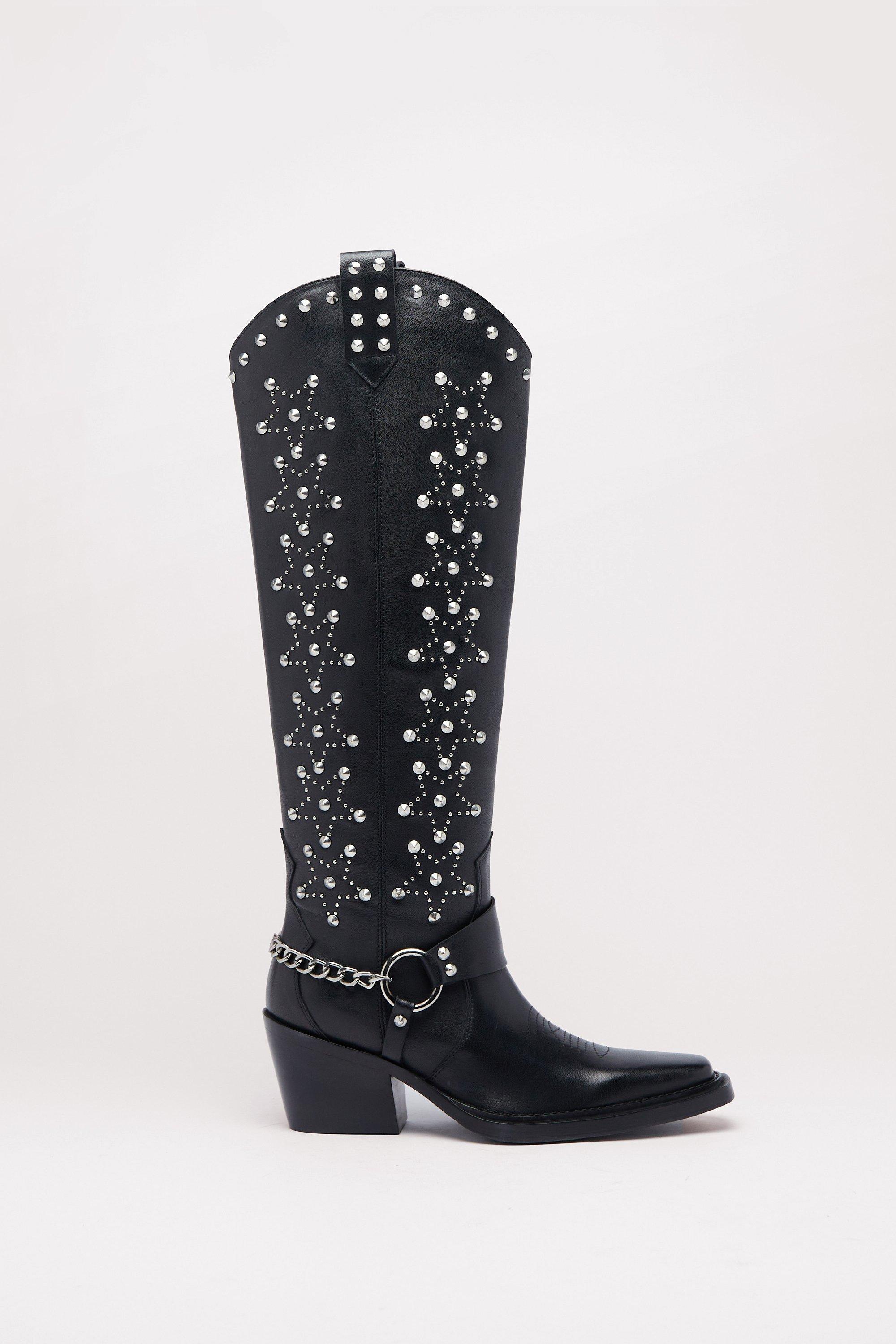 Suede Studded Harness Knee High Cowboy Boots Nasty Gal Very well made.